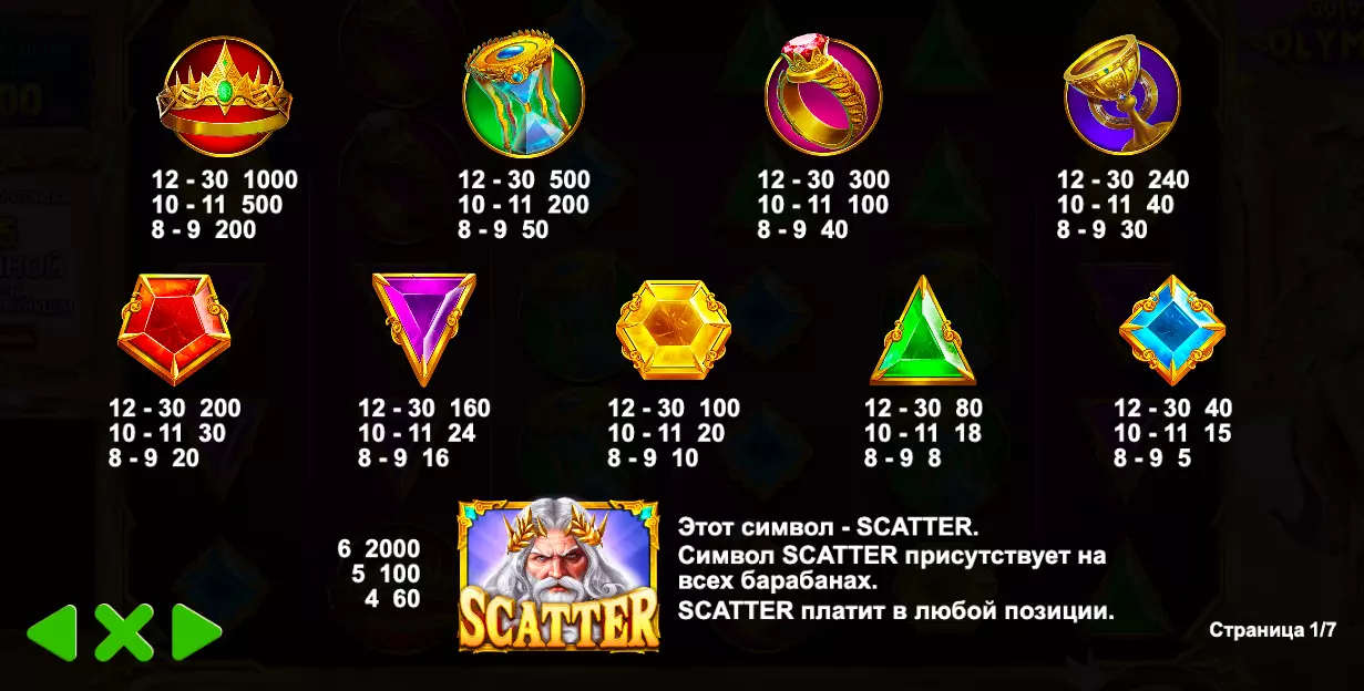 - Роскошные символы: Драгоценные камни, золотые арфы и кубки, наполненные нектаром. Каждый символ выполнен с особой точностью, чтобы соответствовать тематике.