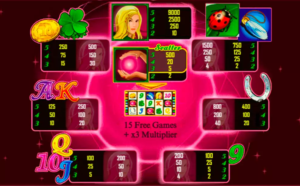 - Free Spins Galore: Зафиксируйте три скаттера в виде хрустального шара и узрите волшебство — 15 бесплатных вращений с щедрым множителем x3!
